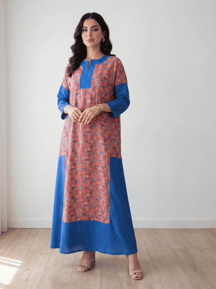 دريس مشجر بقصة "أوفر سايز" خيالية، يجمع لكِ بين فخامة القفطان وراحة الفستان في قطعة وحدة، صمّمناه بنقشات حيوية وقماش بارد عشان يعطيكِ طلّة سعودية مودرن ومرة مريحة، تليق بجمعاتكِ الصيفية و طلتك اليومية الراقية.